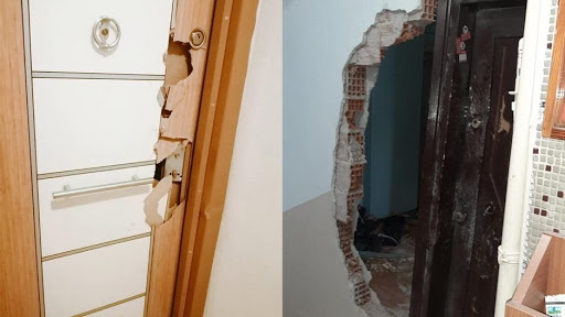 Busted walls and apartment doors of the detainees’ homes (Source: duvarenglish.com)