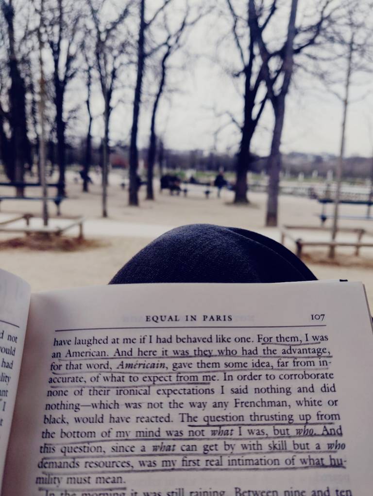 There, on a cold green chair in Jardin du Luxembourg, I stare at the long stretch of sculptures and men. The sun is shy and the wind is rash, and the runners often break the silence in between. I am reading Baldwin, rather I feel that he is reading me, almost coercively. I feel the unease in my heart; in my twists and turns, I convince myself that it is the chair, the weather, the wind or perhaps the annoying tourists next to me. But in my heart of hearts, I know that it is him, with his skewed white teeth and his curly black hair, he tells me things I do not wish to know. He is not a good friend, but perhaps the only one I have. He tells me about his trips to Cafe de Flore, amongst carnations, lilies and a cup of coffee and he talks to me about life in Paris. But more importantly, sitting on the green chair beside me in a jet-black high necked sweater with his silver chain dangling down his neck, he tells me, with all the sincerity in his protruding black eyes, that a phenomenal task in life will be to become true to myself. To somehow create a name of my own in a country where nobody’s my name. In this collage of undocumented misfortunes, to somehow feel my own pain and acknowledge it as it is. To know this terror in my entirety and not become bitter, not hate and yet not be complacent to the oppressor’s hand. As I close my book, he walks away wishing me all the luck in the world, and God knows that I need it, on this sunny afternoon in Paris.