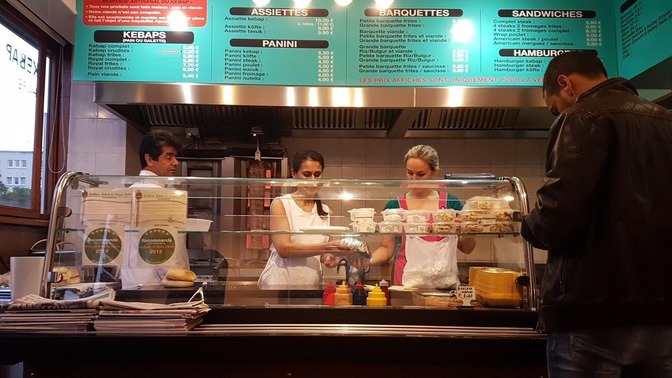 As it closes at 2 am, Le Roi de la Frite is the best option for your late-night hunger. With a menu at 6.5 euros, it is very affordable. Portions are normal, and usually enough to satiate your hunger. Its french fries are definitely a must-have, as they are homemade and very well cooked. Even if the meat is frozen, it is of a decent quality and vegetables improve the taste of the kebab.