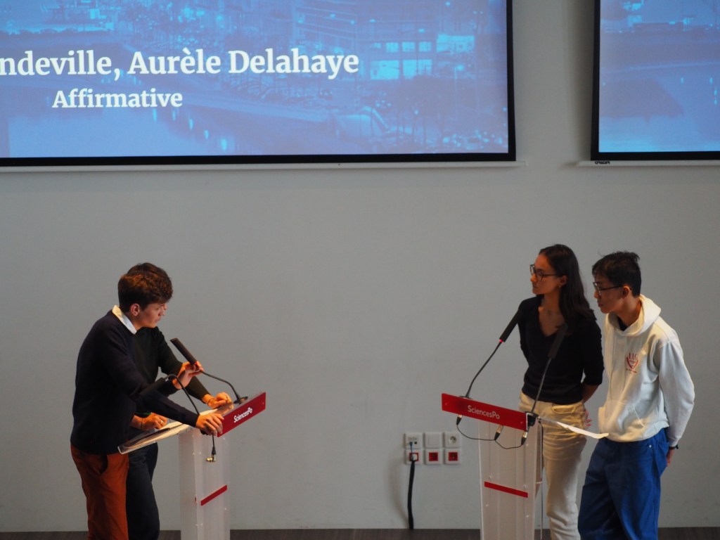 Du côté de Reims, on retrouve Eléonore Shaw et Audrey Morganstern, défendant le oui. Ayant passé toutes deux plus de la moitié (voir la totalité pour Audrey) de leur vie aux Etats-Unis, l’on soupçonne le jury de leur avoir facilité la tâche. Cependant, il faut tout de même admettre que les deux oratrices nous ont servi un discours plutôt étonnant pour l’English track havraise. Celui-ci était fondé sur l’ironie, le second degré, mais de manière assez subtile. Il serait même assez juste de dire qu’elles nous ont fait de l’éloquence à la française.