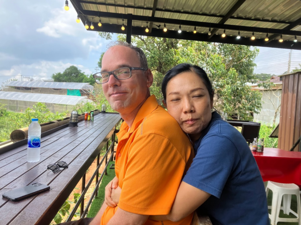 Left to right: A view of the Chiang Dao mountains from my home in Mae Rim, Chiang Mai. My parents Achim and Au after a hike in Mon Jam, taken by me.